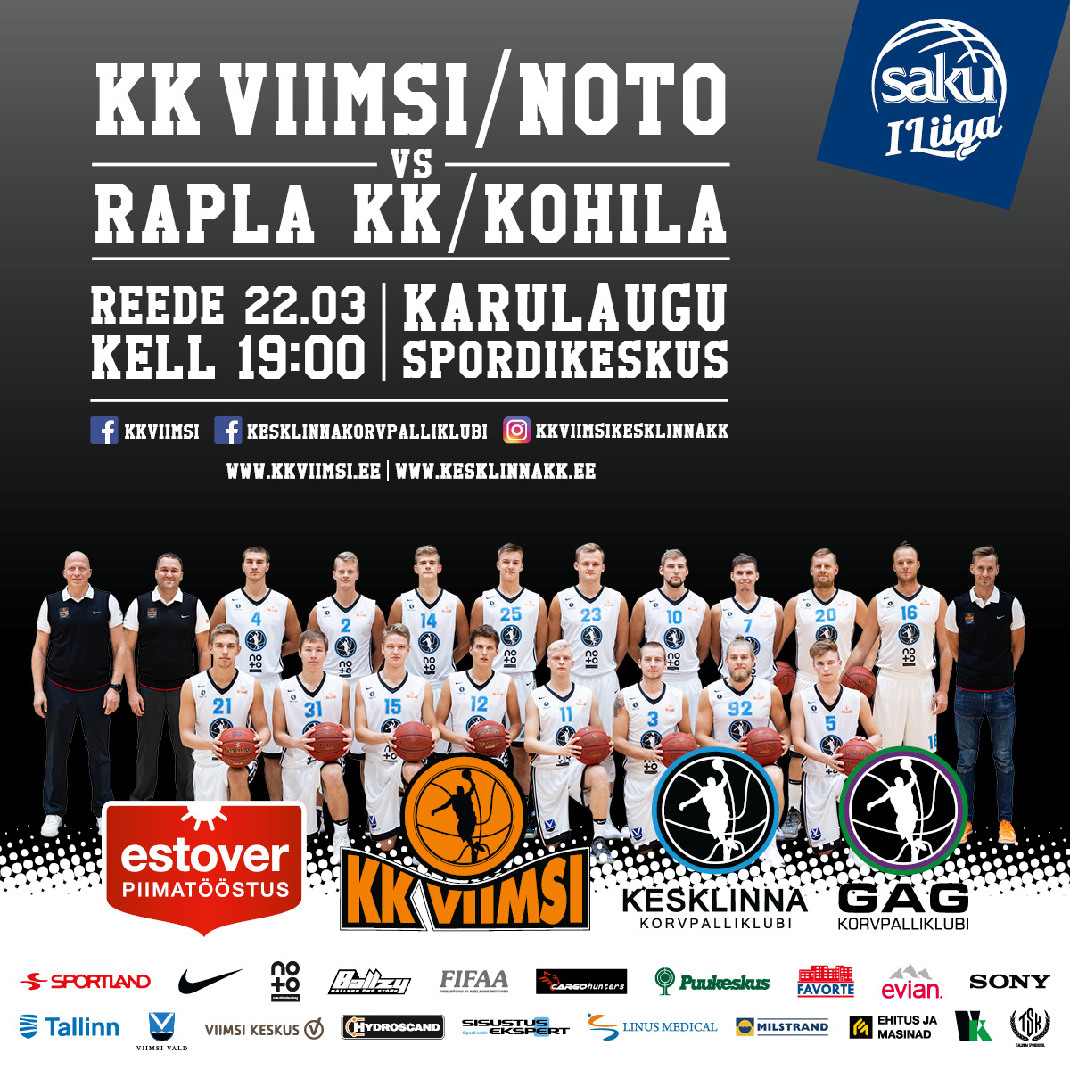 - R, 22.märts Karulaugu Spordikeskus: KK Viimsi/Noto vs Rapla KK/Kohila