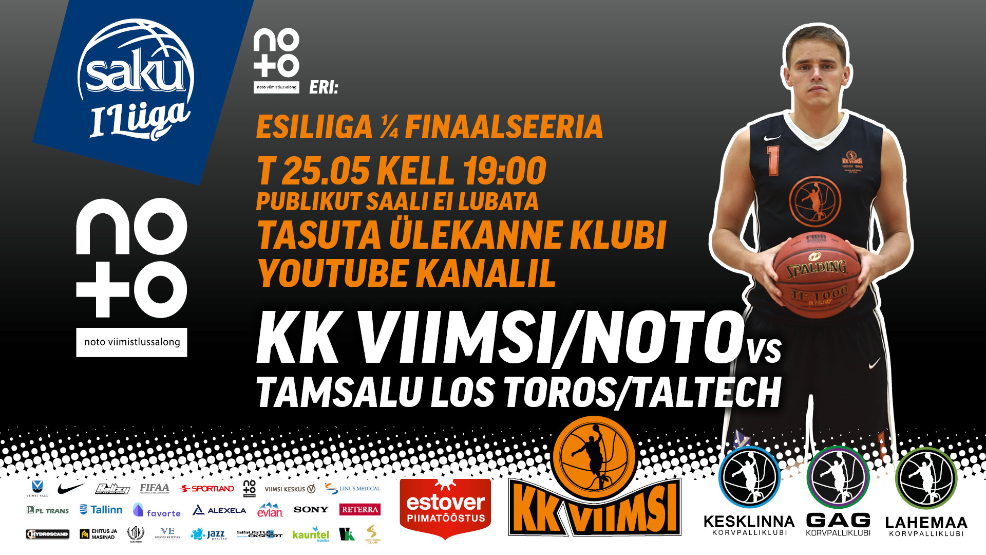 - Teisipäev 25.mail kell 19:00 @Forus Spordikeskus Viimsi, Saku esiliiga ¼, finaalseeria 3.mäng: “Noto eri: KK Viimsi/Noto vs Tamsalu Los Toros/Taltech.”